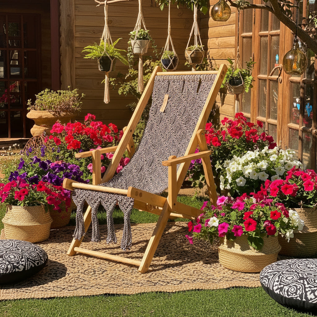 Esta reposera es ese acento elegante que hace que tu terraza, living o balcón se vean “armados” sin esfuerzo… y además se siente rica para sentarse.